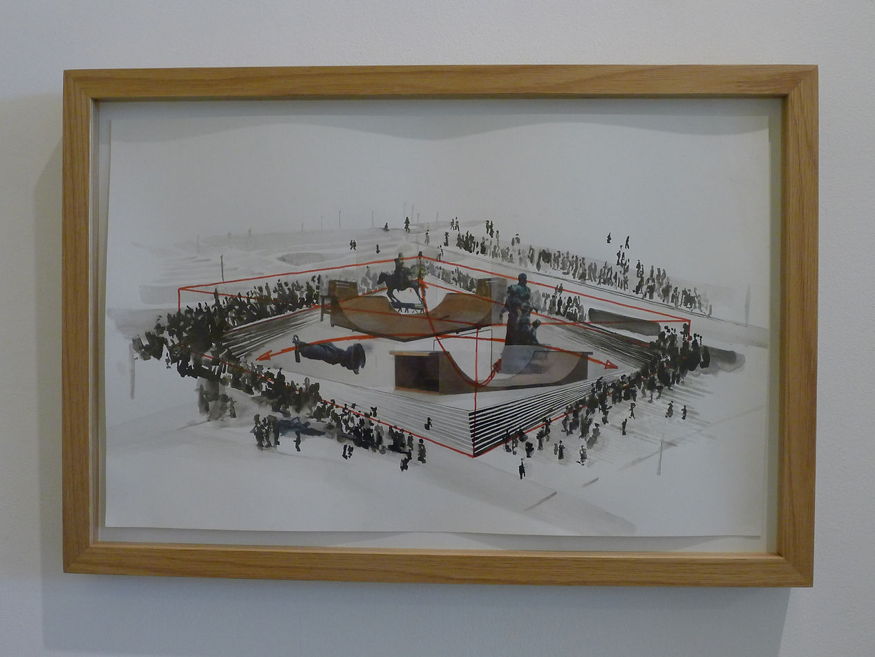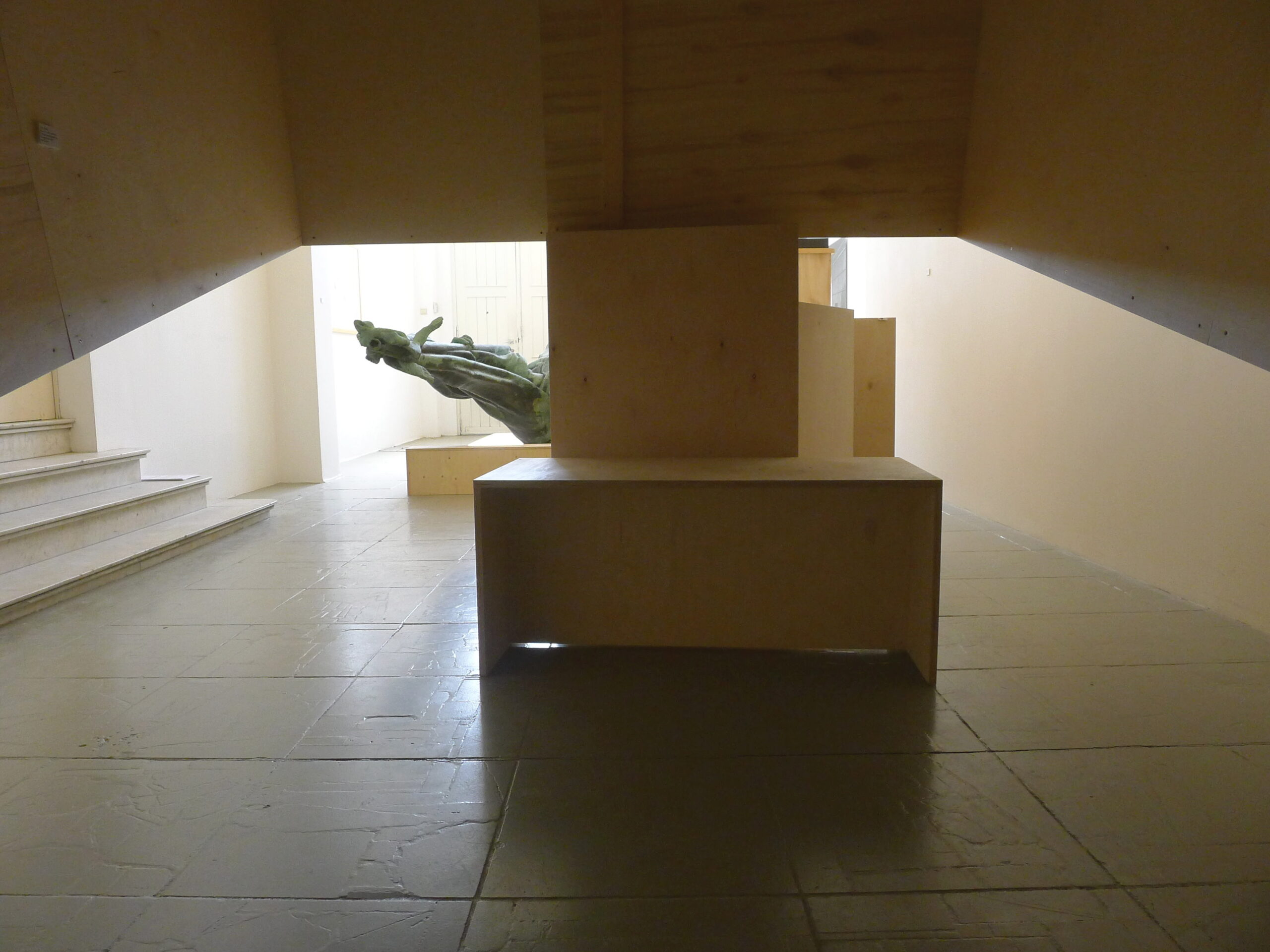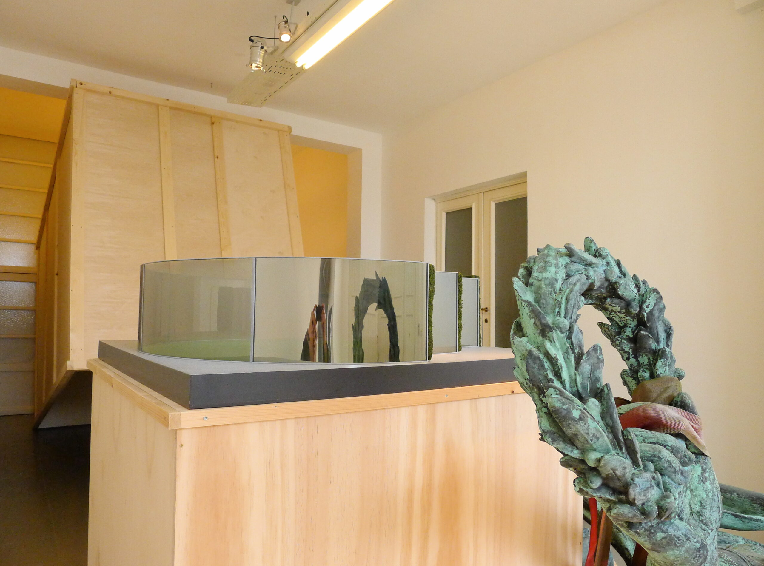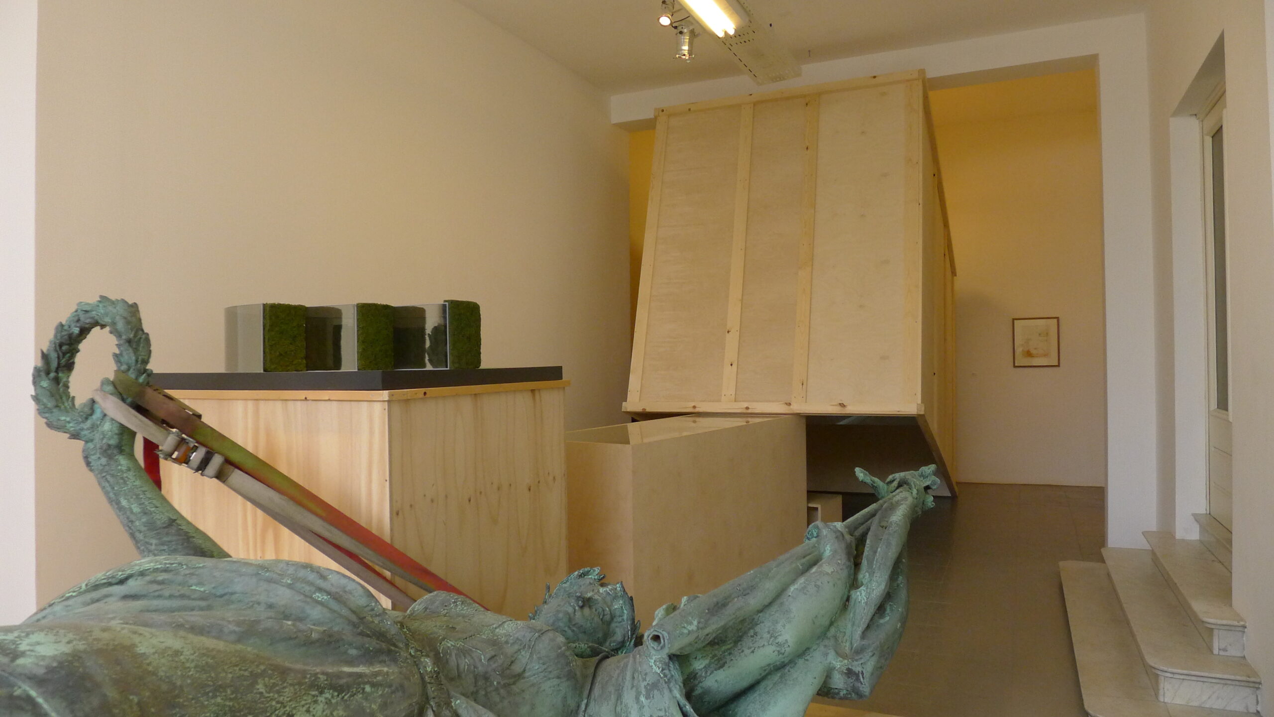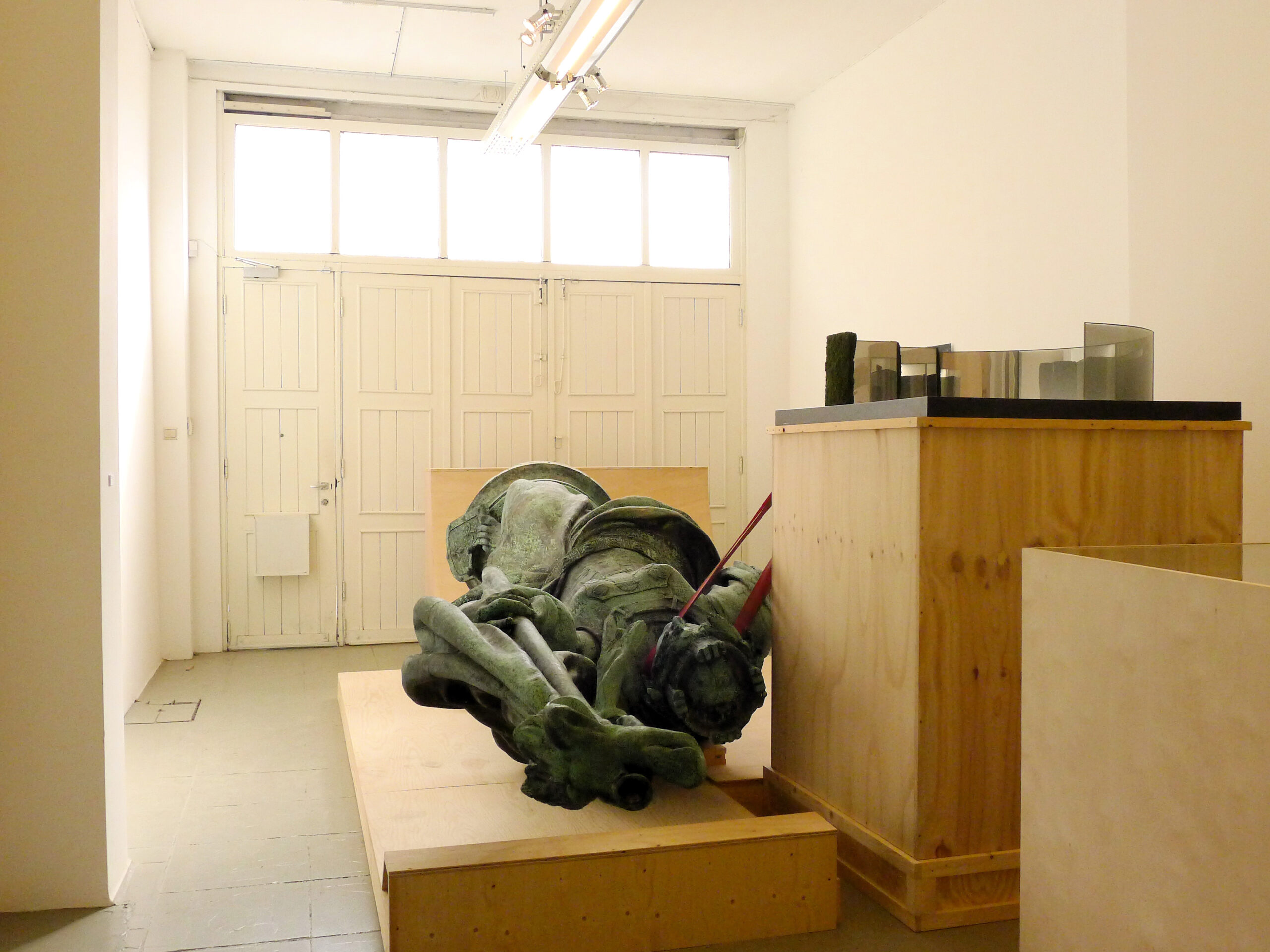 De tentoonstelling daarentegen concentreert zich op de hierboven aangehaalde aspecten van de wisselwerking tussen museum en publieke ruimte in de praktijk en voert één verplaatsing effectief uit: het standbeeld de ‘Franse Furie’ van Georges Geefs uit het jaar 1885 verhuist voor de tentoonstelling van het openluchtdepot in het Middelheimmuseum naar LLS 387.